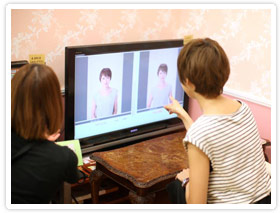 撮影前に姿勢、表情の出し方などについて簡単なカウンセリングとレッスンを無料で行います。とかく緊張しがちな証明写真の撮影、ましてや初めてのフォトスタジオでの撮影の方にはなおさらです。 まずは緊張をほぐし、いい姿勢と表情になれるように、カウンセリング(数分ほど)を行います。これを行うと行わないでは、姿勢も表情も、そして写真から受ける印象も違います。