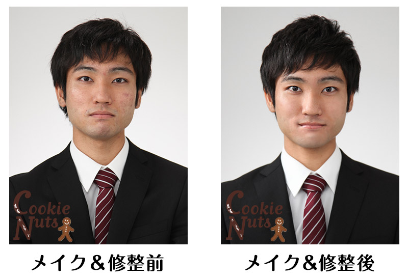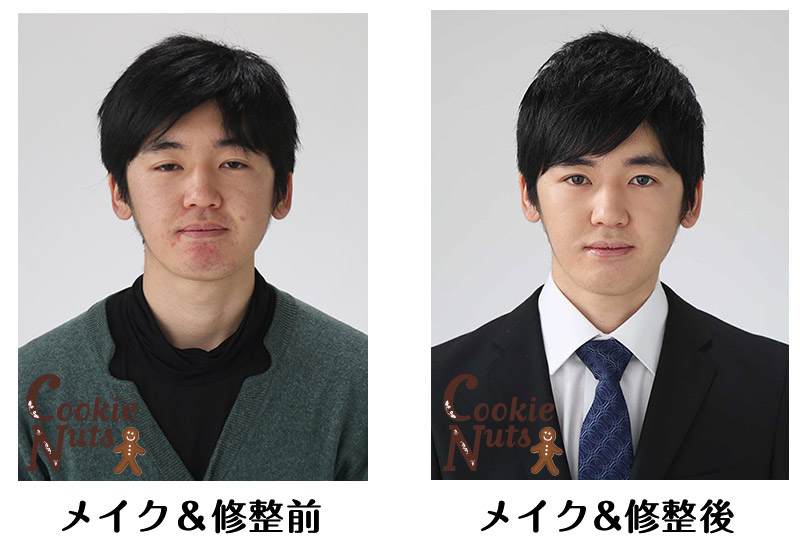 ※クッキーナッツでは、女性はもちろん、男性も眉毛ライン整え、ヘアセットなど就職活動に適したメイクを行います。